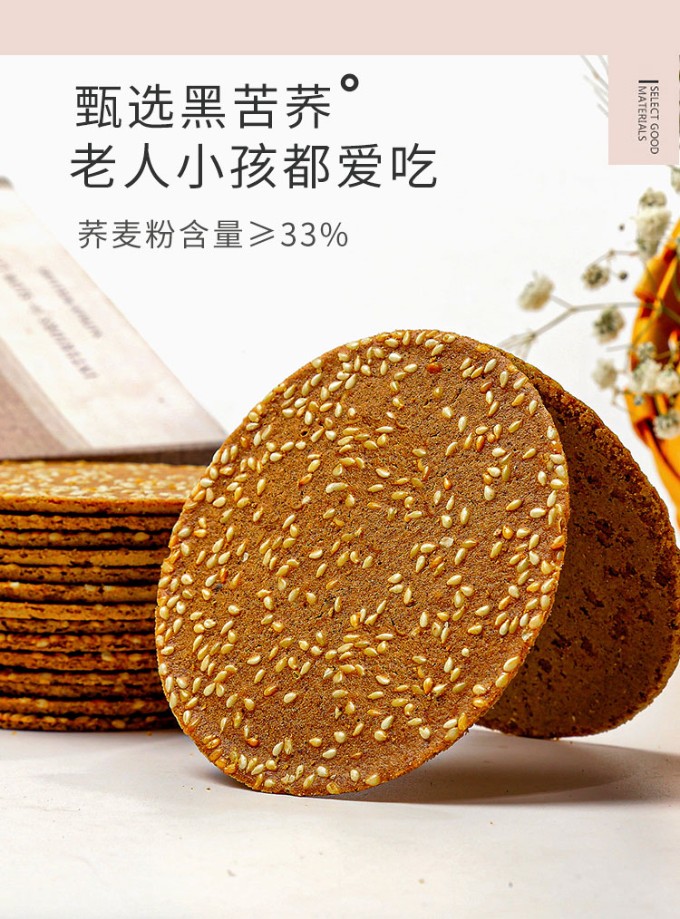 无蔗糖荞麦薄脆芝麻饼干无糖精粗粮零食整箱早餐代餐